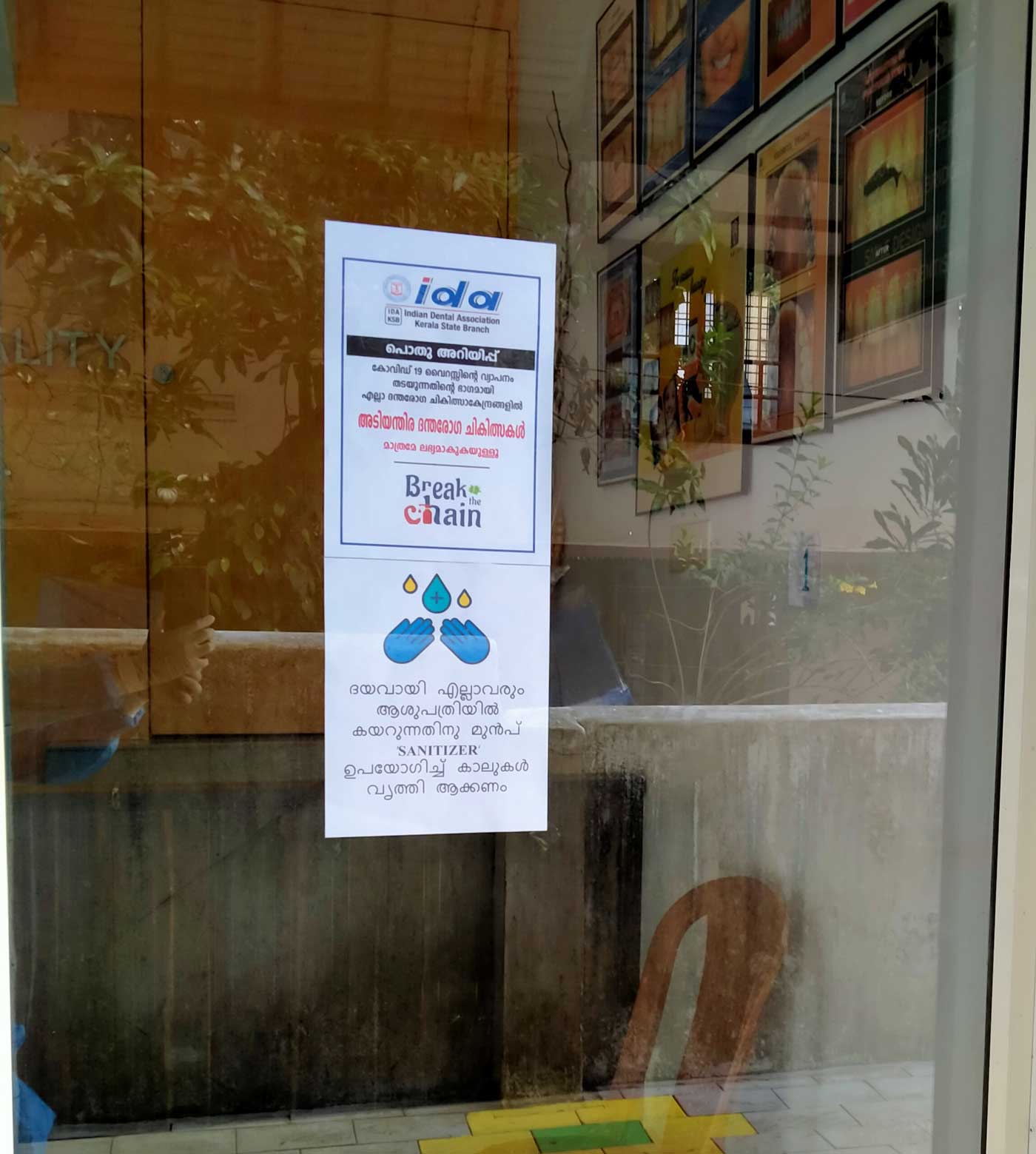 SAFETY PROTOCOLS BEING IMPLEMENTED AT KALLELIL DENTAL CLINIC