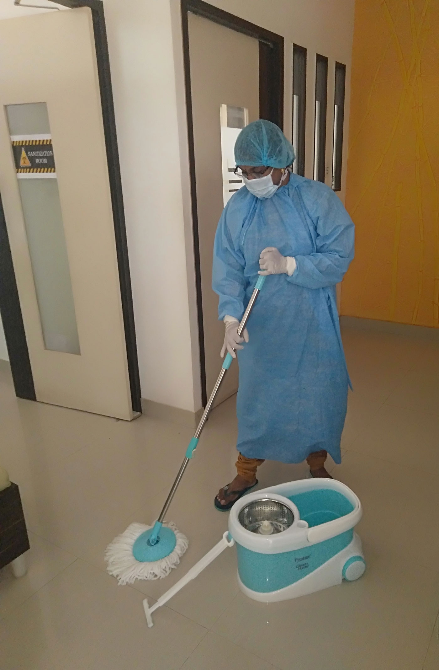 • Regular mopping of floors with sodium hypochlorite solution to ensure proper sterilization.